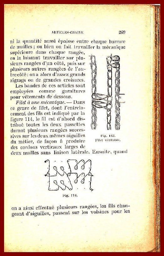 • 1° Organes de formation de la maille • 2° Formation de la maille • 3° Divers métiers à cueillage • 1° Métiers rectilignes à main • 2° Métiers à chevalet • 3° Métiers à tambour • 4° Métiers rectilignes mécaniques • 5° Métiers circulaires à main • 6° Métiers circulaires mécaniques • 7° Métiers circulaires français. Différents types de métiers circulaires français • 8° Métiers circulaires anglais. Nouveaux métiers circulaires à mailleuses • 9° Métiers à fontures d’aiguilles mobiles . . • 10° Métier Paget • 11° Métier Cotton • 12° Métier Cotton avec mécanique Jacquard . • 13° Métiers à font uros d’aiguilles mobiles. • 14° Métiers à plusieurs aiguilles • 15° Métiers avec aiguilles à palette • Métiers circulaires • Métiers rectilignes •