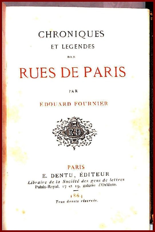 Edouard FOURNIER – CHRONIQUES ET LEGENDES DES RUES DE PARIS