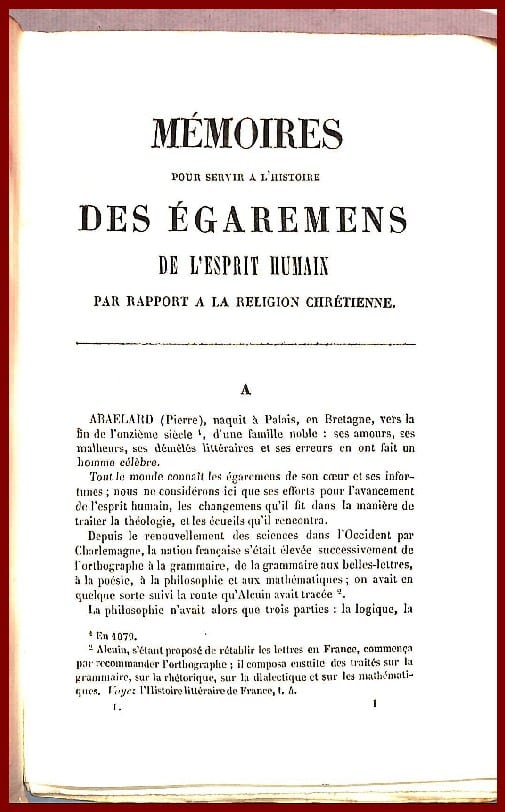 • OU MÉMOIRES Pour servir à l’histoire DES ÉGAREMENS DE L’ESPRIT HUMAIN PAR RAPPORT A LA RELIGION CHRÉTIENNE.* •