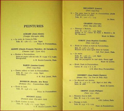 Peintres et dessins présentés lors de cette exposition de juillet à septembre 1938 au Palais de Fontainebleau
