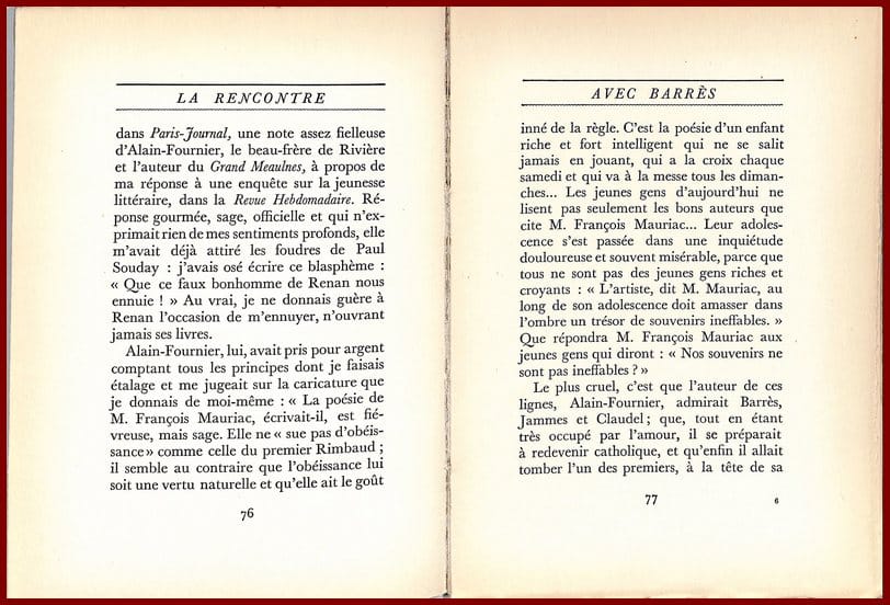 Avant que Dieu remette une fois encore les atouts entre nos mains débiles, rappelons Barrés au milieu de nous, non pour ranimer une doctrine dépassée, mais pour recevoir de sa bouche le maître mot, qui renferme tout notre destin et celui de l’Europe : le Rhin. Qu’on me comprenne : Barrés sait bien que ce nom magique ne répond pas à tout ; mais, pour refaire une Europe, il ne suffit pas d’une génération ; nous avons besoin devant nous d’une période indéfinie de sécurité, de maîtrise. Il faut atteindre cet objectif limité où nous pourrons rêver à ce que nous voulons construire, sans craindre de surprise. La raison de notre échec, au lendemain d’une telle victoire, Barrés nous la répéterait chaque matin s’il était vivant : « Nous avons échoué parce que nous avons été incapables de fournir une civilisation à ces pays rhénans dont nous étions les maîtres. » Aux pays rhénans d’abord, puis à l’Allemagne, à l’Europe.