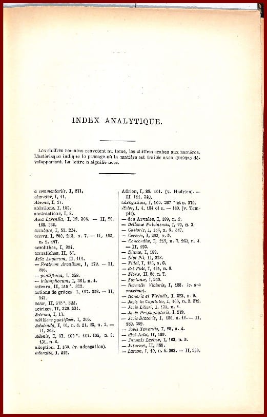 • Leur nom, p. 21. — Leur nombre, p, 22. — Conscription des Vestales, p. 22. — Durée de leur charge, p. 25. — Privilèges et honneurs, p. 26. — Rapports des Vestales avec le ponlifex maximus, p. 28. — Leurs fonctions, p. 29. — Participation à certaines solennités, p. 32. — Bona Bea, p. 32. — Vestalia, p. 35. • Pages •
