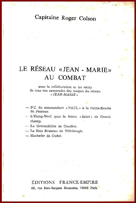 Cet ouvrage avait été annoncé sous la signature du colonel Rémy, ancien chef du réseau de renseignement de la France Libre Confrérie Notre-Dame, qui avait pris connaissance avec le plus vif intérêt des notes réunies par le capitaine Colson sur l’action des combattants des maquis animés par Henri Frager, détaché en France par le colonel Buckmaster, l’un des chefs de l’organisme britannique « Special Operations Executive ». Mais la grave maladie d’un de ses proches empêcha Rémy de donner suite à son projet et c’est donc sous la signature de leur camarade, le capitaine Colson, que les survivants du réseau « Jean- Marie » vous présentent ce livre, fruit de la coopération de plus de quarante anciens maquisards, comme des souvenirs de nombreux Français qui, risquant la perte de leur liberté et même leur vie, permirent l’implantation des maquis dans les départements de Seine-et-Marne, de l’Yonne et du Loiret, lesquels devinrent autant de territoires de la Résistance.