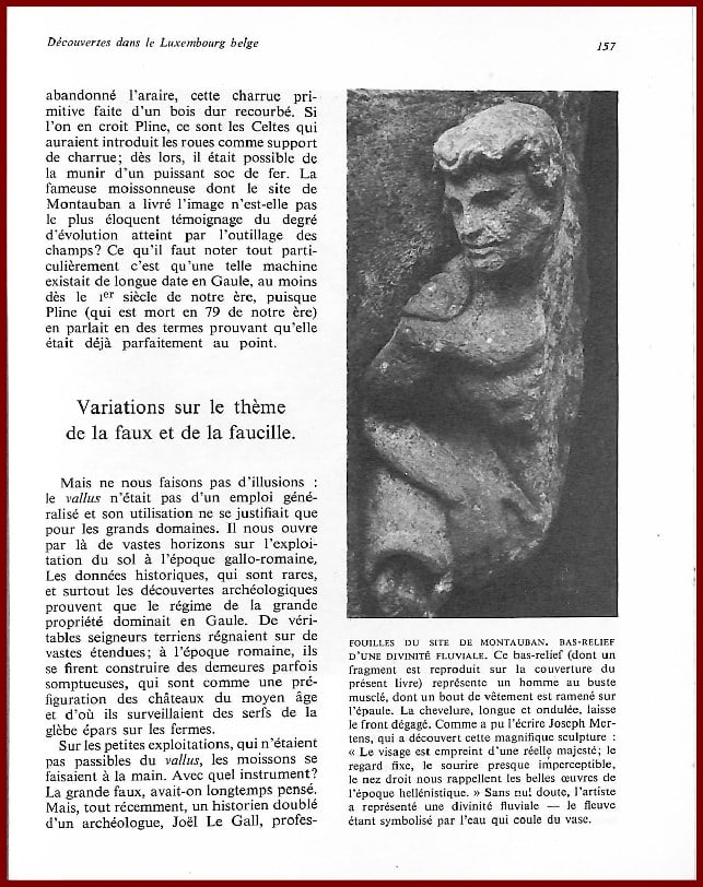 Un rempart fait de tombeaux. — Des « tableaux de genre », dans l’art funéraire. — Quand Pline parle des moissons… — Une moissonneuse mécanique illustrée par des sculptures. — Labourage et pâturage étaient déjà les mamelles de la Gaule. — Variations sur le thème de la faux et de la faucille.