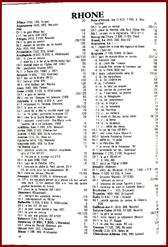 Les cotations qui figurent dans ce guide ont été établies en opérant des moyennes nationales pendant l’été 1980. Il convient donc de les actualiser chaque saison au moyen de notre annuaire général et de tenir compte de la poussée de l’intérêt régionaliste qui conduit des amateurs locaux à offrir davantage pour une carte qui leur manque que n’importe quel collectionneur éloigné. On ne s’étonnera donc point d’assister, en particulier pour les pièces exceptionnelles, à des surenchères souvent affectives.