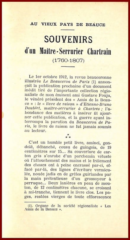 SOUVENIRS d’un Maître – Serrurier Chartrain
